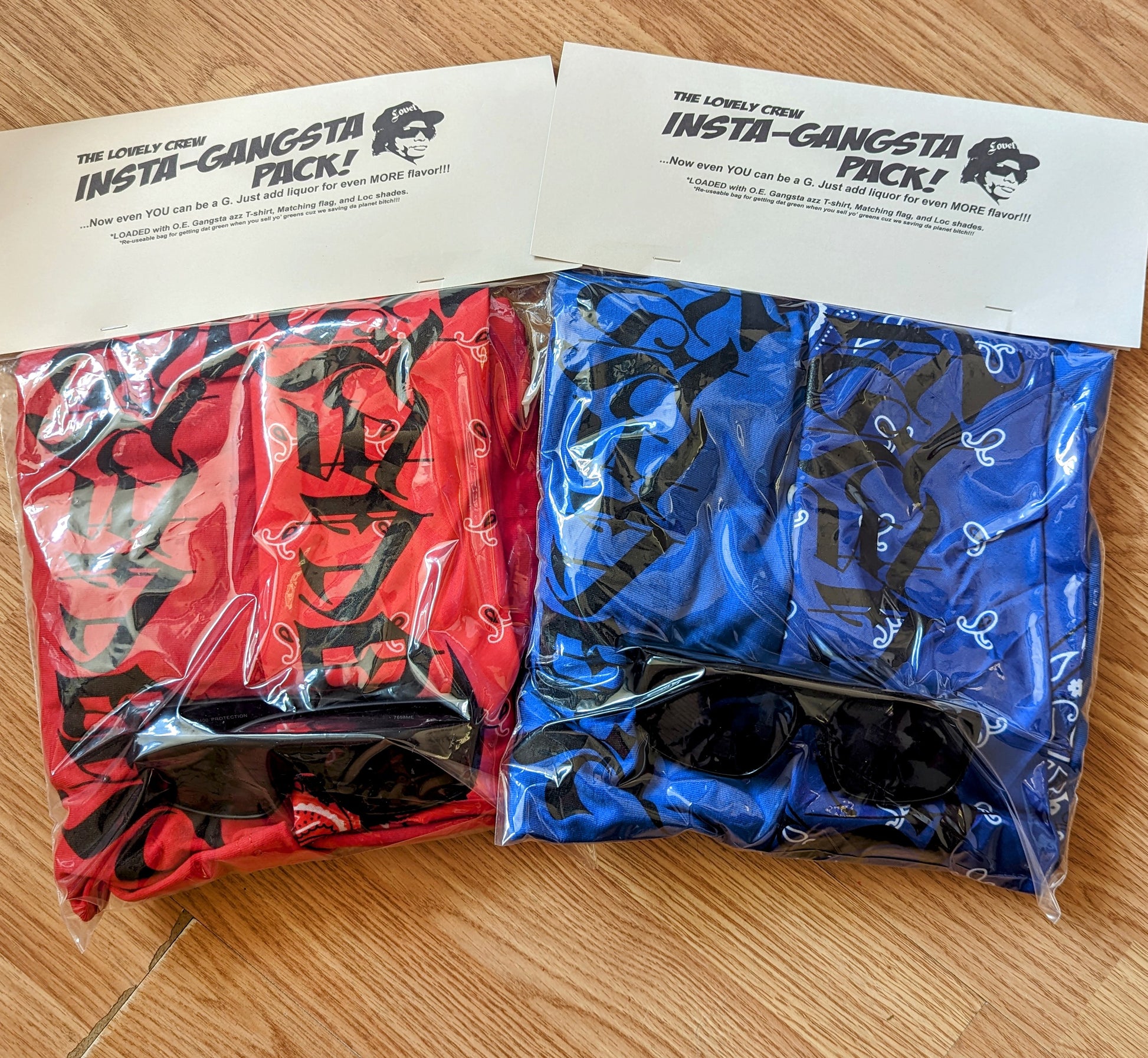 Kit includes OE gangsta T-shirt and matching flag and a pair of OG locs sunglasses.